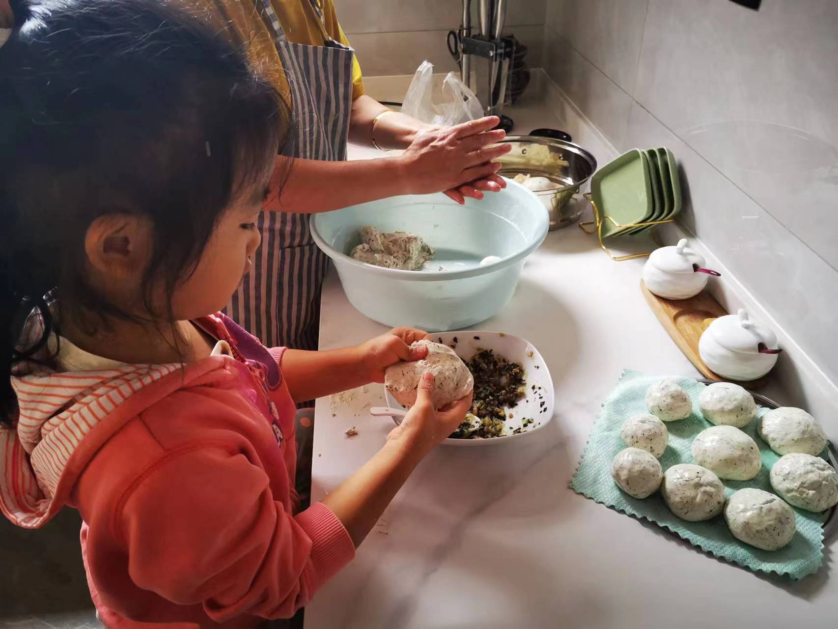 南明幼儿园大三班黄智琪小朋友在给家自制南瓜饼