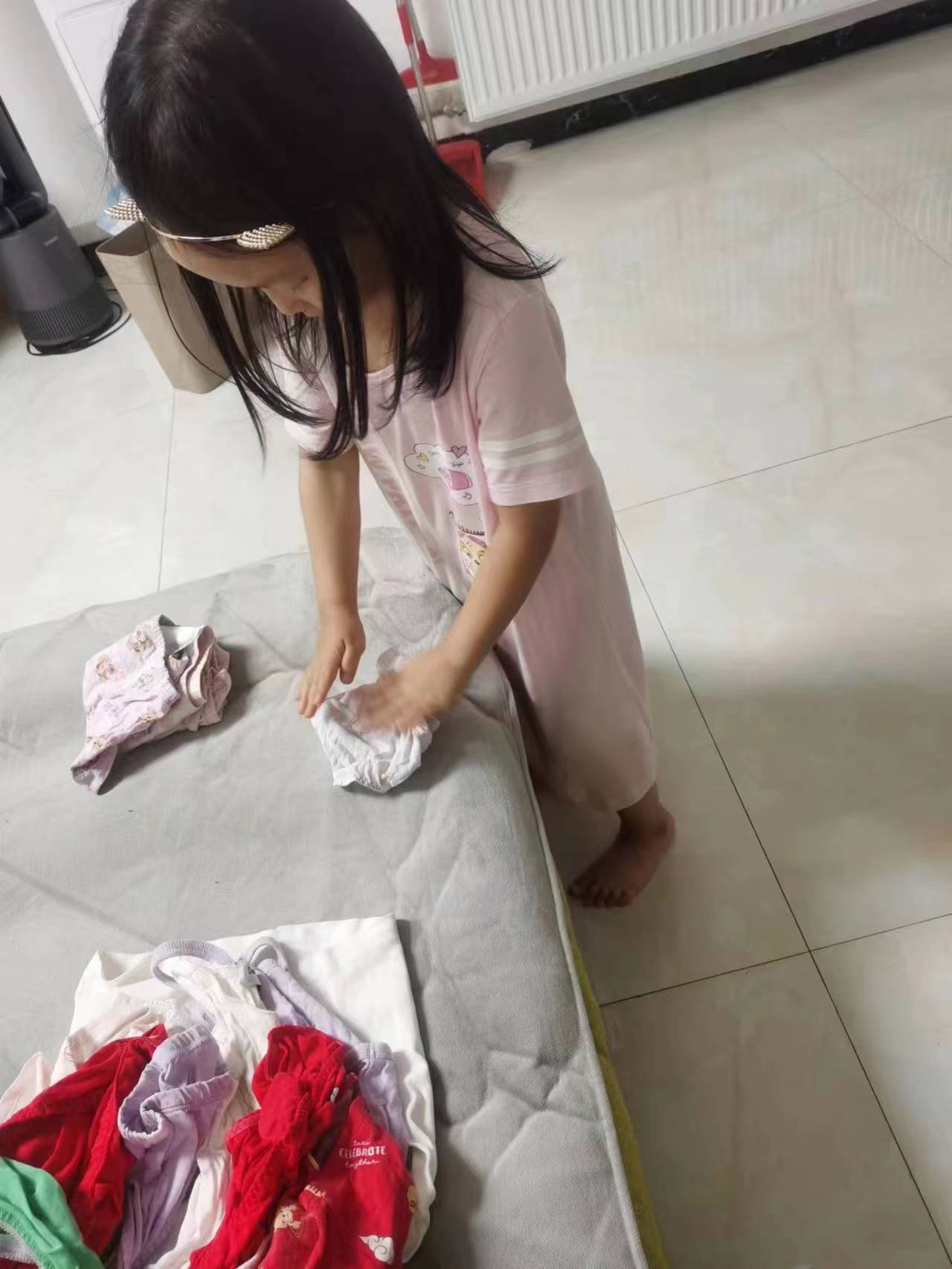 南明区实验幼儿园的小朋友在自己叠衣物、做包子、自己动手洗碗