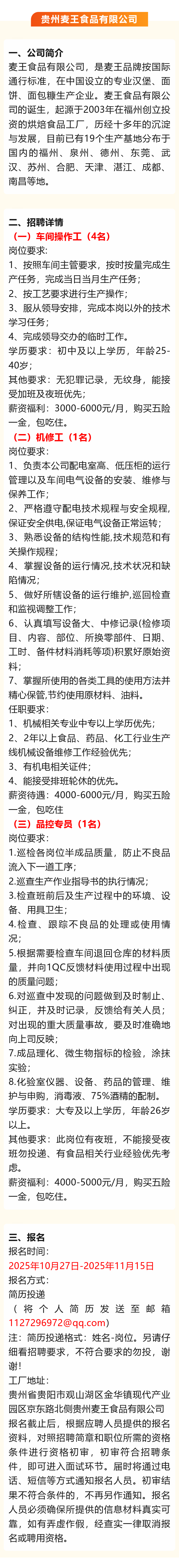 【知名企业】贵阳市观山湖区招聘!五险一金!包吃住!