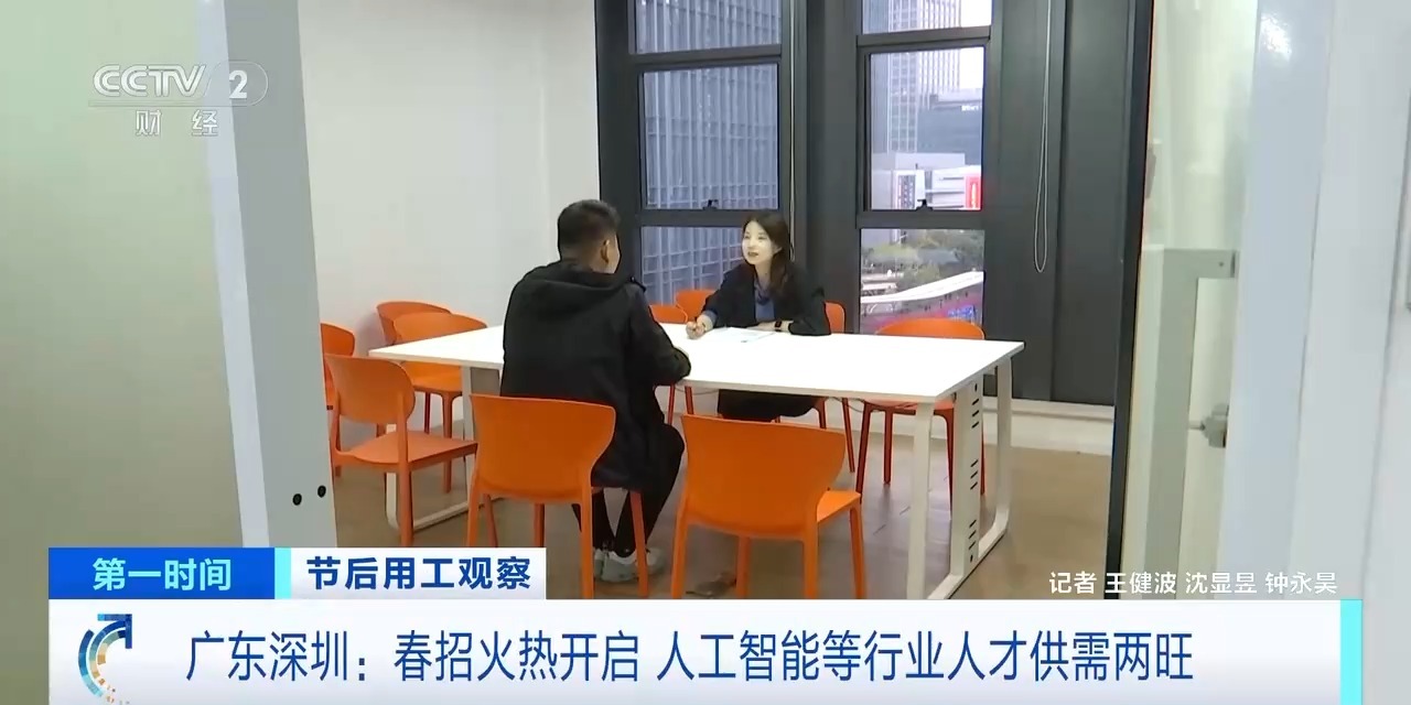 广东深圳某人工智能企业员工 徐宇强:当时大概投递了四五十份简历,才会得到一个面试机会,而现在,投递四五次简历就会得到一个面试的机会,包括薪资待遇也会相对有所提高。
