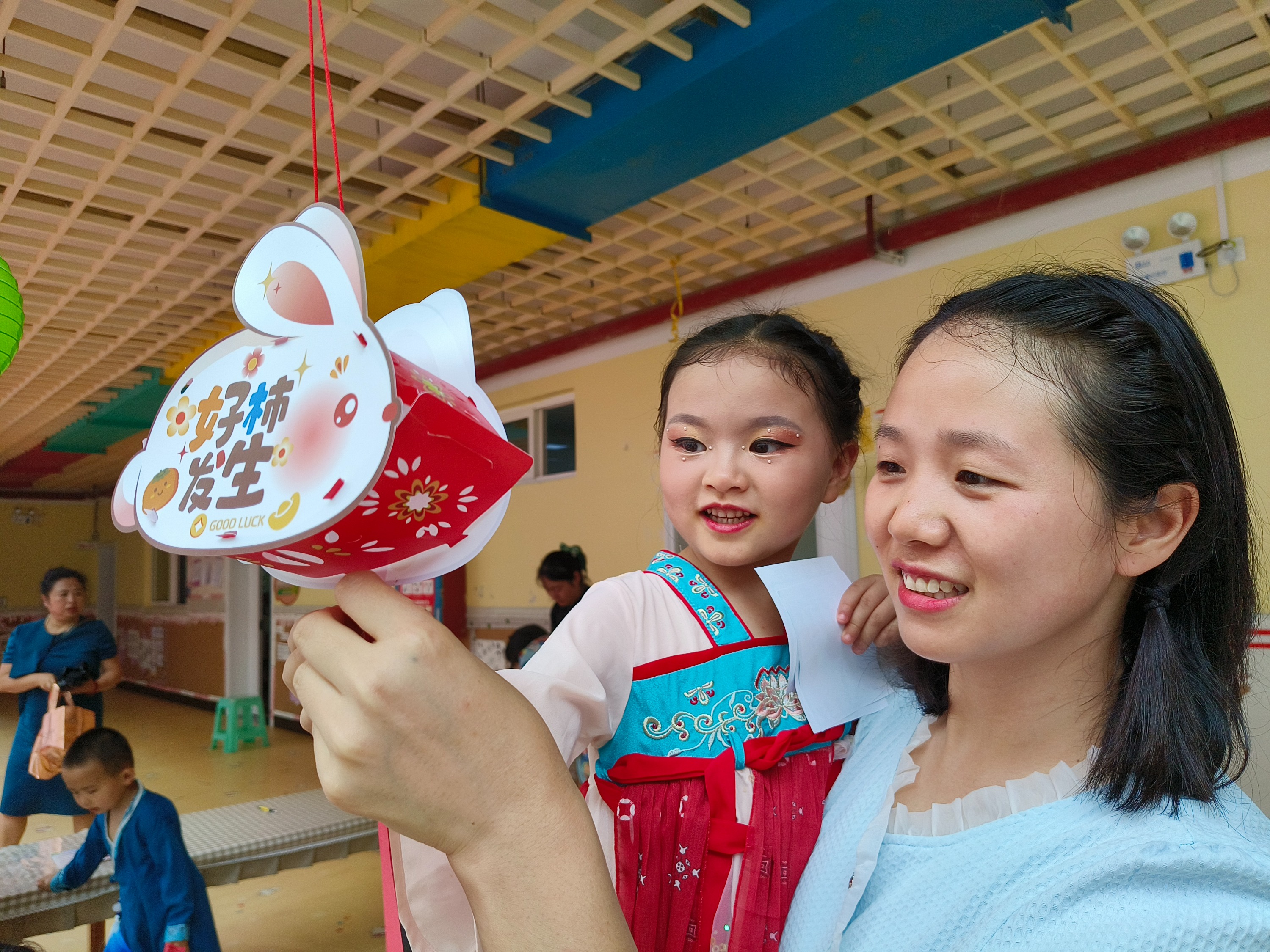 打卡体验活动中,亲子一起玩民间游戏(猜灯谜、套圈、运西瓜、竹竿舞、蹴鞠等)、体验民间技艺(水墨画、剪纸、扎染等)、品尝民间美食(炸洋芋、棉花糖、豆面糍粑等)。孩子们在自己的节日里尽情的表演、游戏、体验,在高质量的陪伴中感受家长们满心的爱意和最好的祝福,在欢愉的氛围中,中华优秀传统文化如春雨一般浸润着每个孩子的心田,在孩子心里播下爱国的种子。孩子们将持续多形式的去探寻中华民族的优秀文化,去了解、去诠释、去发扬,去传承。