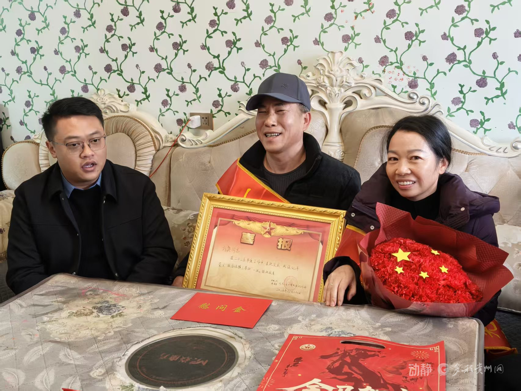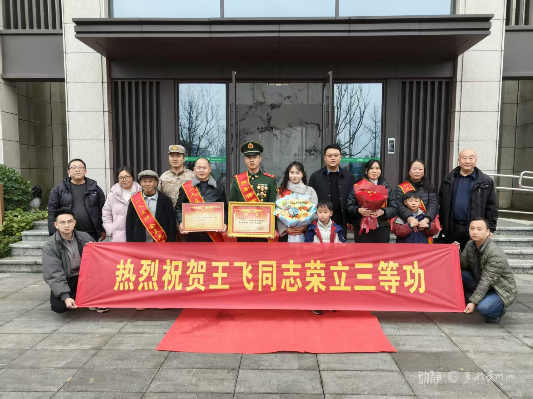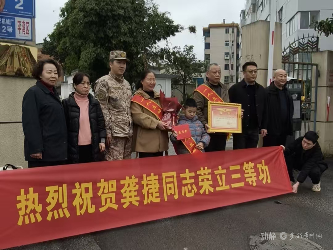 2月5日上午,贵阳市退役军人事务局联合贵安新区社会事业管理局、贵阳市花溪区人民武装部组成“报喜团”,带着满满的敬意前往荣立三等功的现役军人龚捷、王飞、刘俊家中,将承载着军人荣耀与国家关怀的喜讯郑重地送到军属手中。