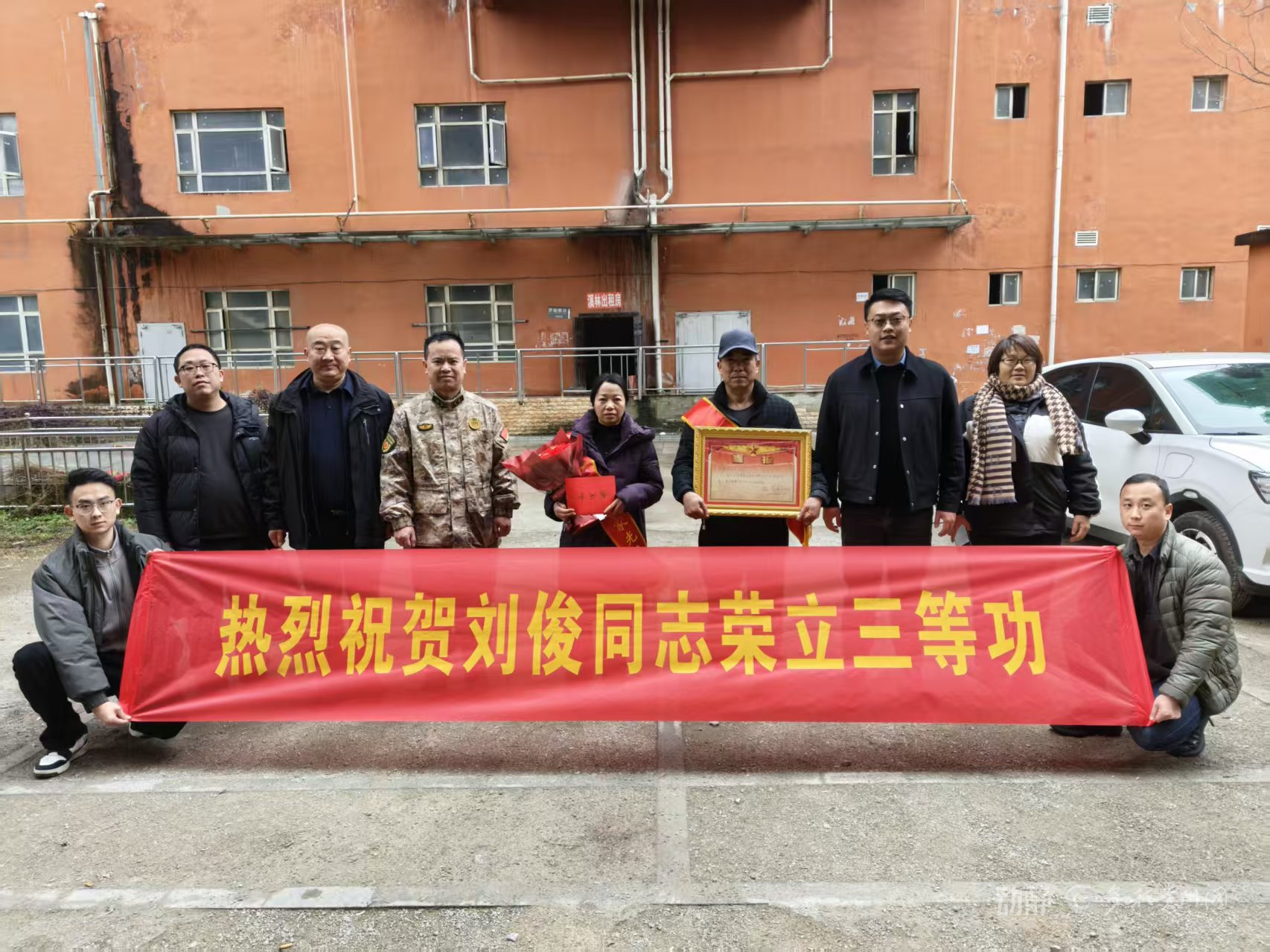 "报喜团"为现役军人龚捷家属送立功喜报