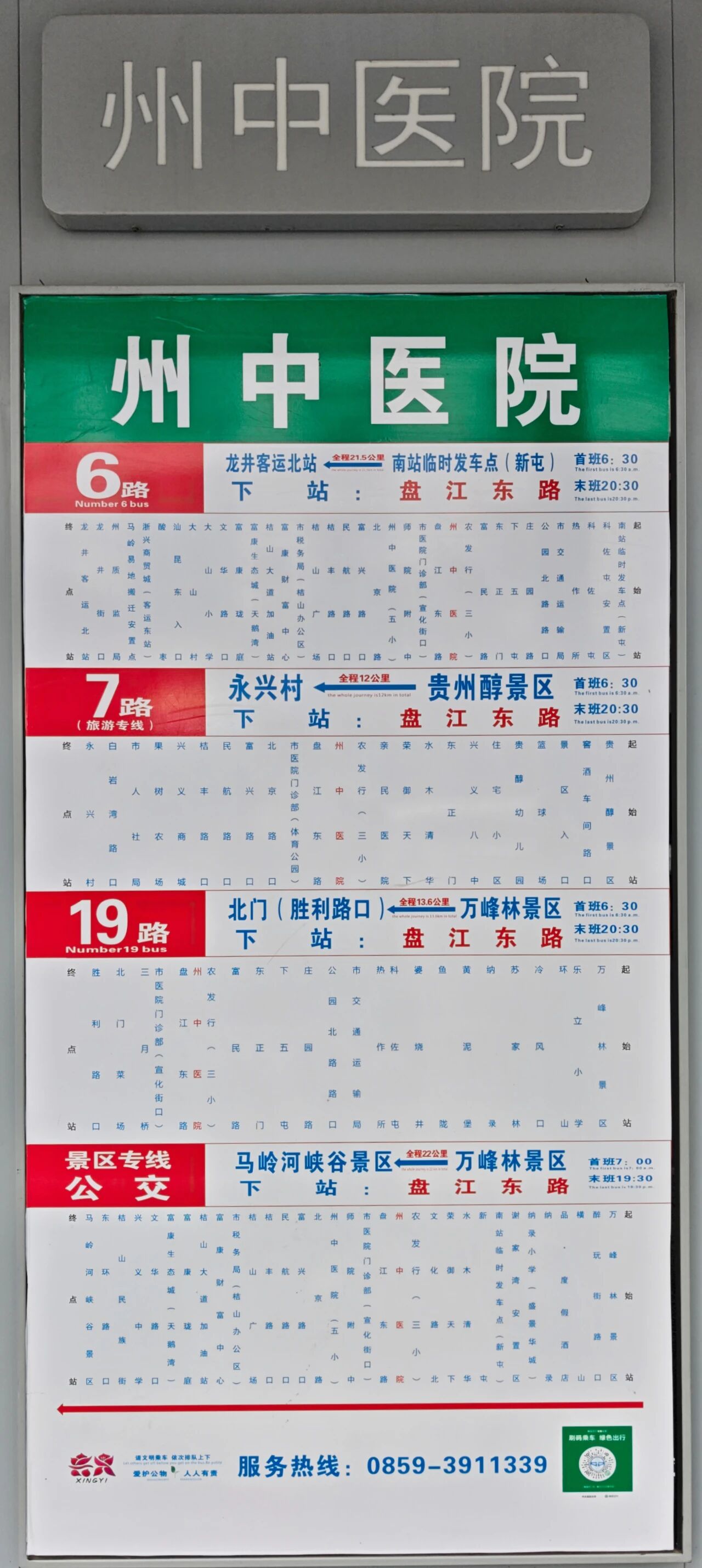 公交出行:兴义市区可乘坐6路、7路、19路、景区专线公交车,在盘江路【州中医院】站下车即达。公交线路图如下(点开高清图可查看站点明细):