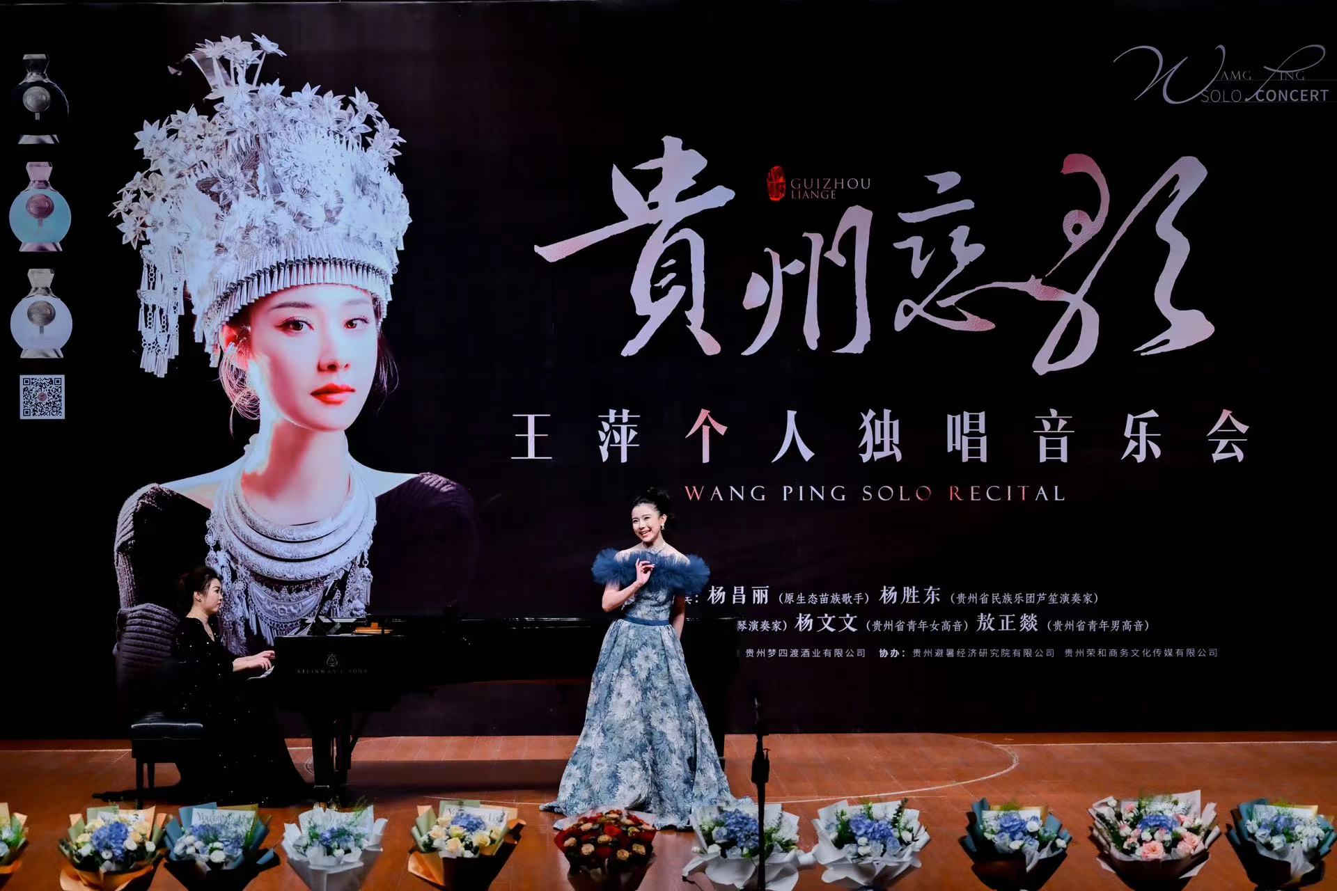2024年4月7日,黔籍旅欧歌唱家王萍携手青年歌唱家敖正燚、杨文文、钢琴艺术指导候汀、小提琴家廖昊月在贵阳大剧院举办“贵州恋歌”王萍独唱音乐会。