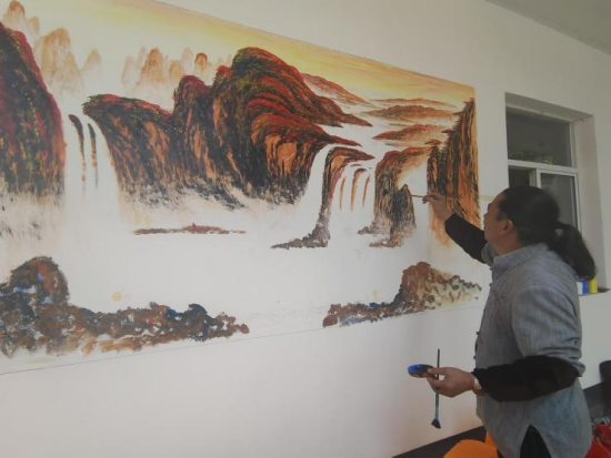 那么,究竟要分几步才能在墙上绘好一副山水画呢?“两步。”县美术家协会的郭松喜给出了肯定答案,“第一步用墨线框定范围,第二步直接上手就行了。画了几十年的画了,还是能拿捏住的。”倒不是自夸,只见郭松喜面对白墙一挥而就,如有神助,一上午的时间就完成了整幅山水图。“这真是大师的杰作,让平平的白墙增添了文艺气息,让我们也观摩到了现场作画的魅力”,村民周花香连连夸赞。