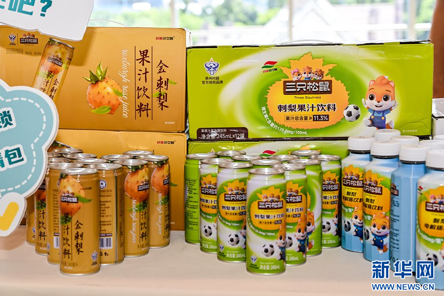 活动现场,黔顶供应链管理有限公司带来与贵州“村超”联名的刺梨系列饮料。“我们推出刺梨果汁饮料、金刺梨果汁饮料、枸杞刺梨汁饮料、刺梨电解质饮料等多款产品,突出健康、天然、活力的品牌调性,能满足不同消费场景需求。”公司总经理开金启说。