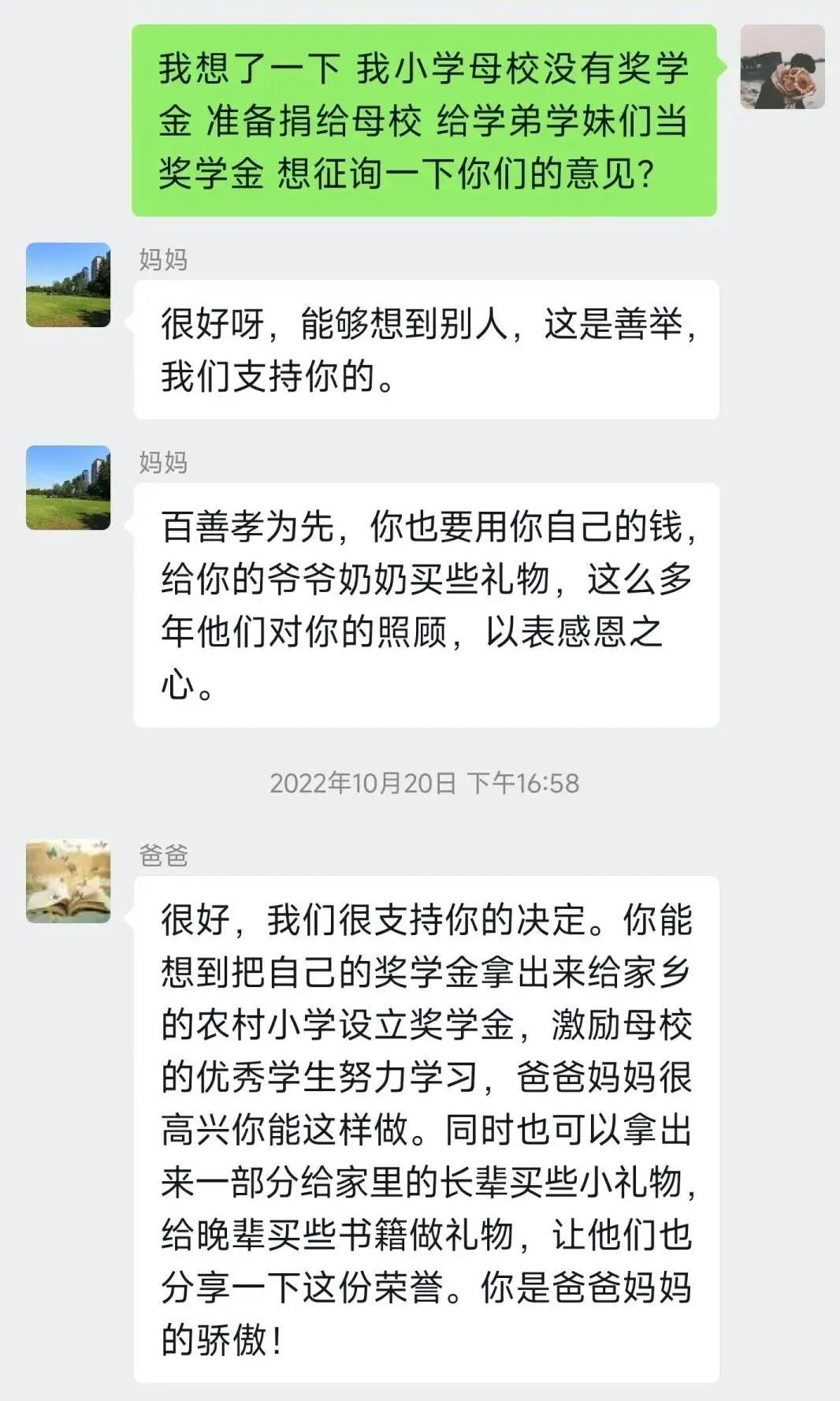 “爸妈,我想捐出奖学金”