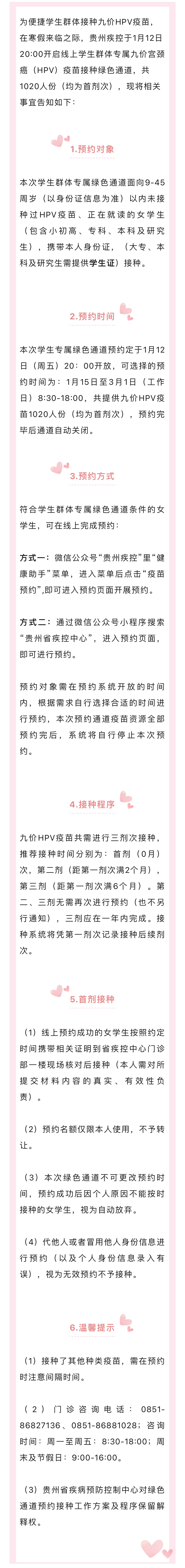 动静健康 | 假期即将来临,贵州疾控为学生群体提供1020支九价HPV疫苗!