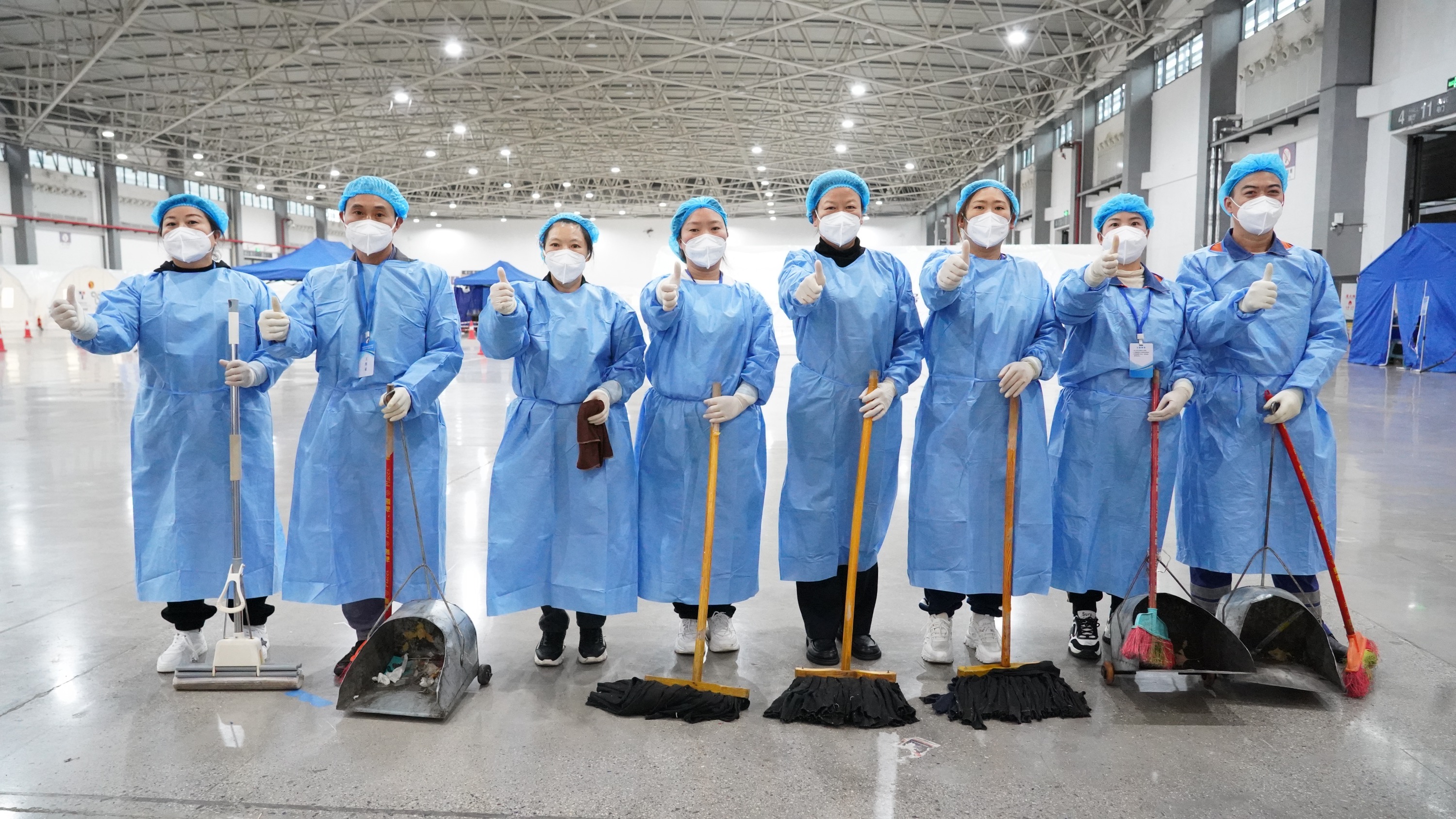 除了方舱,何萍还组织环卫工人,一起在贵阳市观山湖区大街小巷做卫生保洁消杀工作,直到贵阳市疫情得到有效控制,她才返回家中与家人相聚。