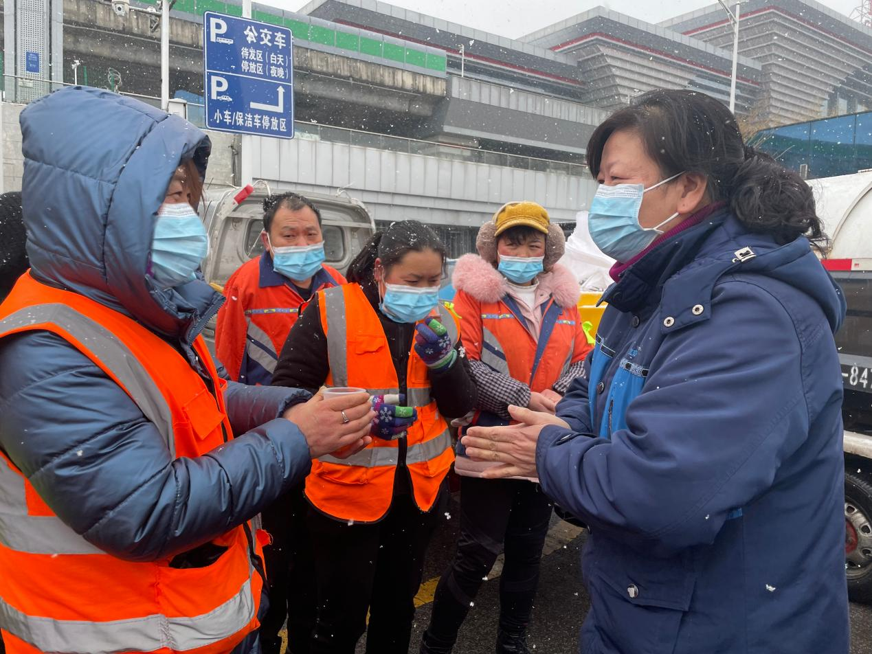 除了日常工作外,她还会在闲暇之余,和一线的环卫工人们做思想交流,传达上级的相关政策,关心他们的身心健康,力所能及的帮助困难职工解决家中急事、难事,这些大大小小的事,何萍一样都没有落下。