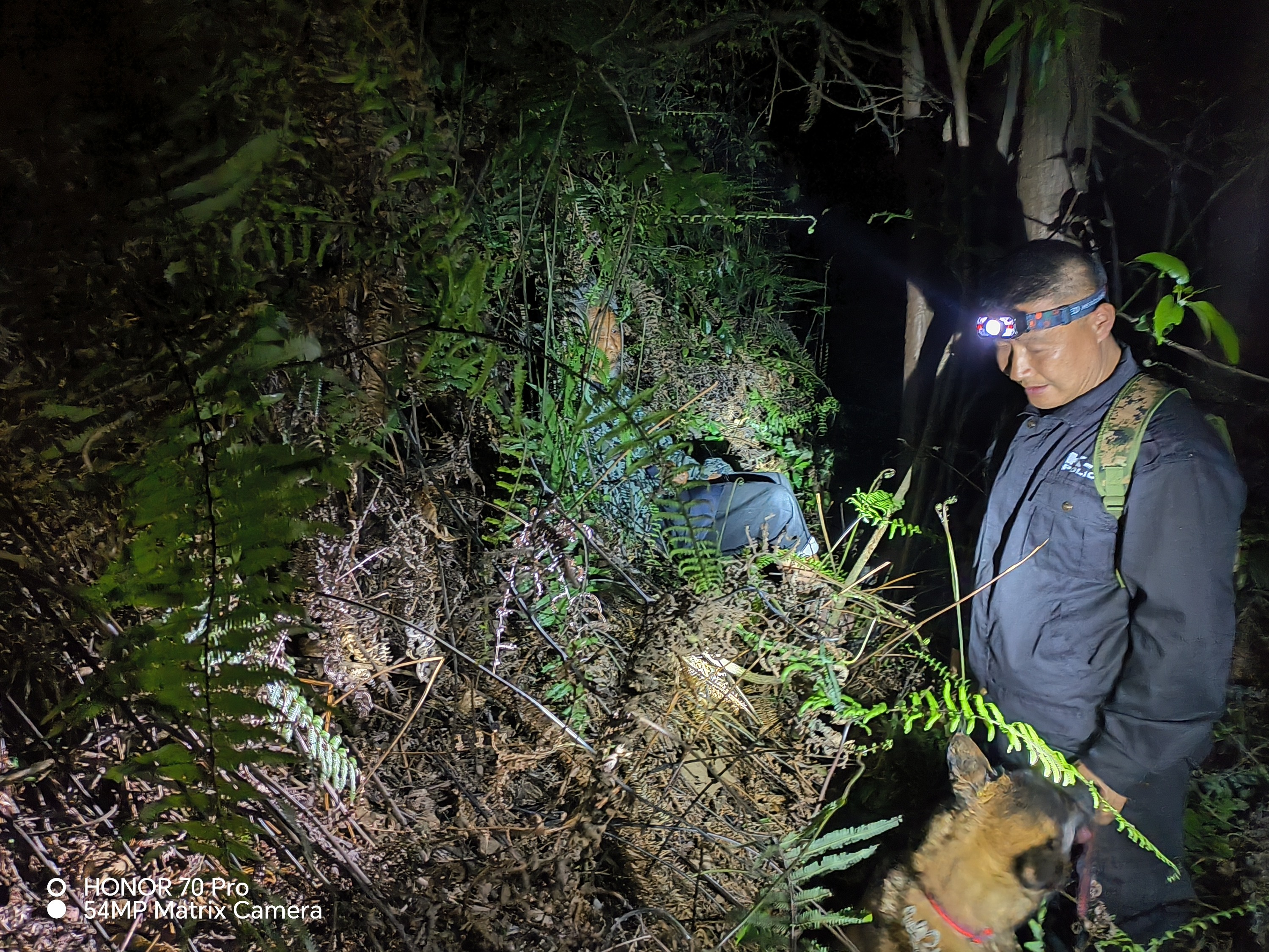 时间一分一秒的过去,搜救工作紧张进行中,最终经过近5小时的不间断搜救,于当晚21时许,通过警犬锁定区域,无人机热成像及高空视野优势,在黄溪村田坝组山林深处,发现了蜷缩在草丛中的吴某。