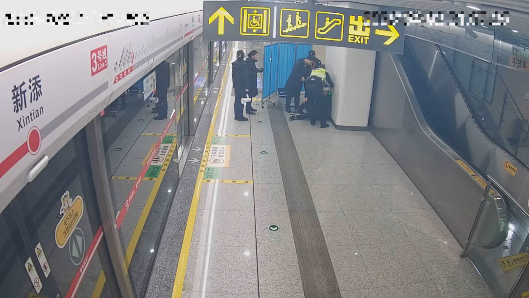 近日,地铁新添站警务室接到站台安保队员紧急报告,称有乘客在站台不慎摔倒,头部疑似出血。接报后,分局警务人员迅速响应,联合站方工作人员第一时间赶赴现场处置。