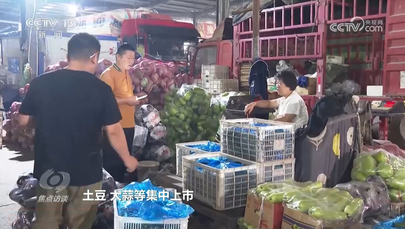 河南商丘农产品中心批发市场副总经理刘团伟:“前段时间受雨水天气影响,蔬菜价格上涨比较厉害。我们看到这种情况,当即把我们的储备库打开,储存的蒜薹、洋葱、土豆、大蒜等集中上市,补充了短板,供应没有问题,商户到全国各地也调集了一大批新鲜蔬菜注入市场。”