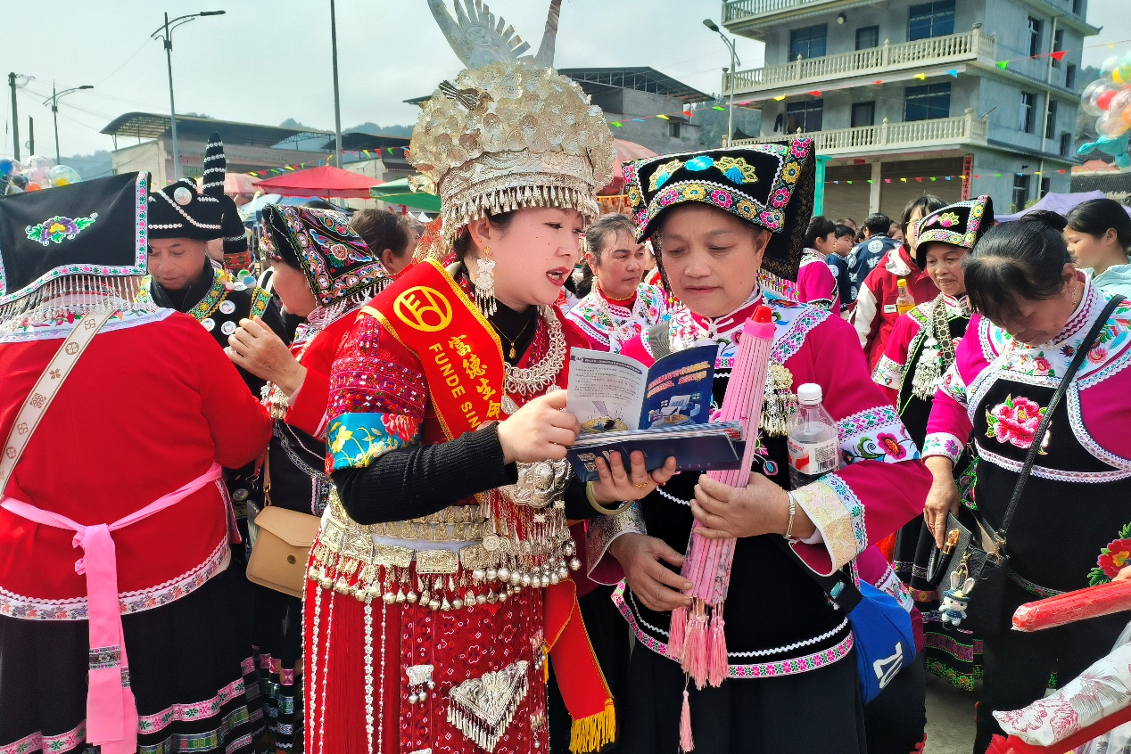 3月8日,富德生命人寿黔东南中支紧扣“清朗金融网络 守护安心消费”主题,借凯里市大风洞镇老君寨·双江芦笙会民俗盛会之机,开展3·15金融消费者权益保护教育宣传活动,以苗汉双语山歌传唱的创新形式,将金融反诈与消保知识送到苗族同胞身边,让乡村群众在文化盛宴中筑牢金融安全防线。