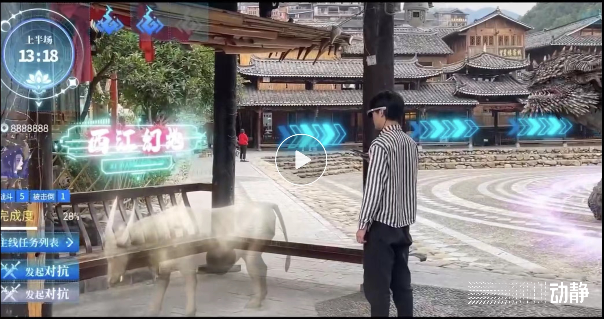 戴上MR眼镜,游客不仅可以看到元宵节的专属特效,还可以在苗寨的其他景点触发更多的“元宇宙”特效以及互动情节,体验新技术为古老苗寨加持的奇幻buff。