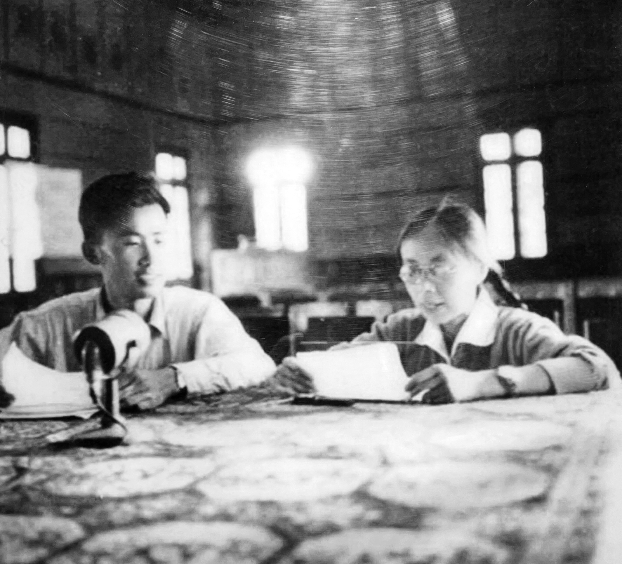 1959年春 播音员刘彬、谭莹正在播音