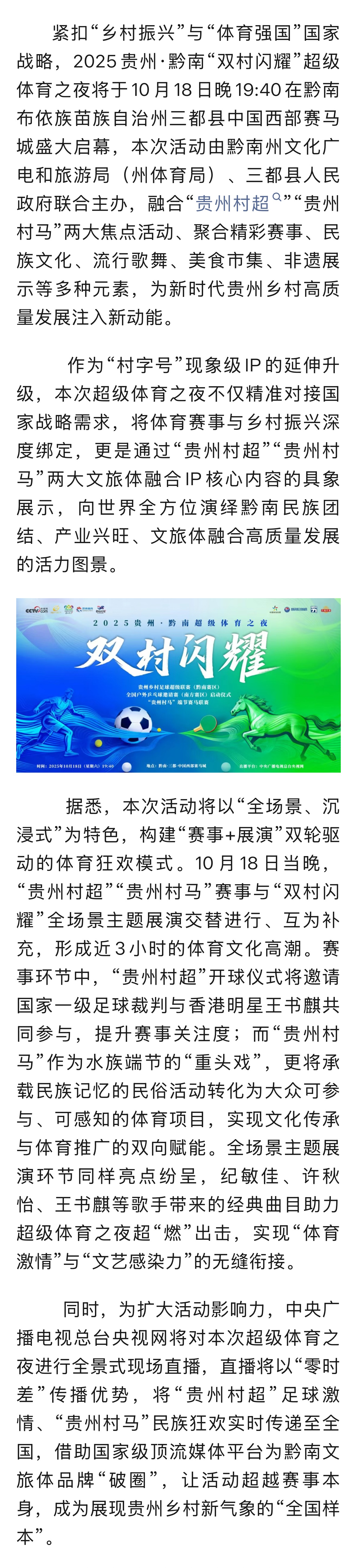 2025贵州·黔南“双村闪耀”超级体育之夜启幕在即 文旅体融合绘就乡村振兴新图景