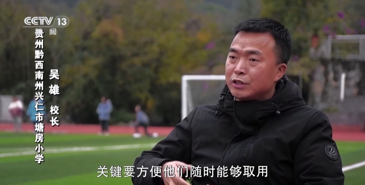 贵州黔西南州兴仁市塘房小学校长吴雄:体育用品我们实行开放式的管理,就是充分信任每个孩子,体育用品就放在场边,关键要方便他们随时能够取用,用完以后他们也会放到那个地方去。下课的这十分钟也好,大课间三十分钟也好,课外活动一个小时,他们绝对不会放过这种运动时间的,就是玩的时候他们好好玩,上课的时候就好好学习,两不误。