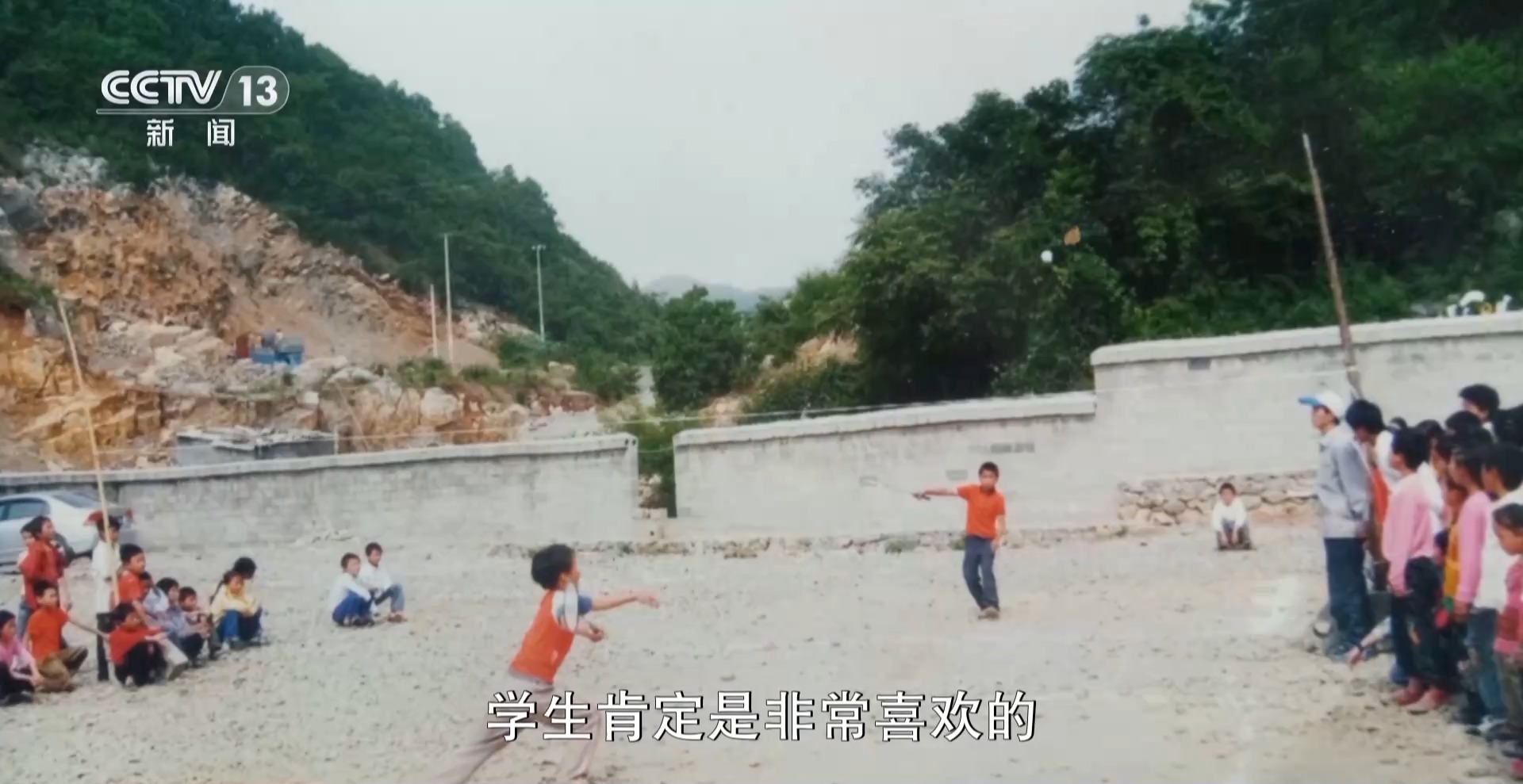 校长吴雄:第一届运动会时候,一个专职体育老师都没有,就是现学现教。最重要的是就地取材,我们到1.5公里外抬了一块水泥板,用砖头垫起来,中间用木板做网,进行乒乓球比赛。第二届、第三届我们陆续加入了羽毛球比赛,用白石灰画了边线,中间用两棵竹竿插上,拉一根绳子,就是网了。学生肯定是非常喜欢的,孩子们最起码喜欢来上学了。