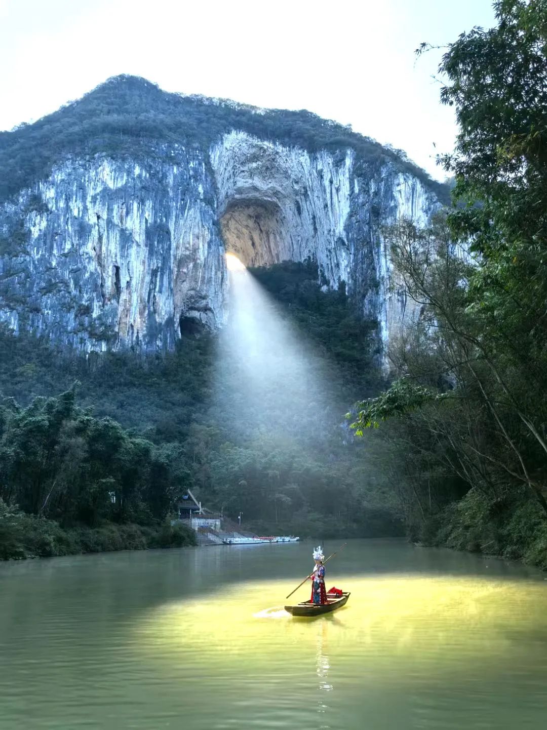 在距离黄果树大瀑布不远处的龙宫景区,以其典型的喀斯特溶洞景观而闻名于世,集溶洞、峡谷、瀑布、峰林、绝壁、溪河、石林等多种喀斯特地质地貌景观于一体,被誉为"大自然的大奇迹"。龙宫的水溶洞长达15公里,洞内钟乳石形态各异,乘船游览水溶洞,仿佛置身于一个神秘的地下宫殿,船在水中行,人在画中游。