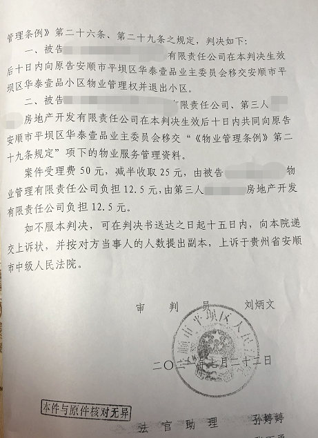 在现场,记者也见到了小区的前物业公司“贵州黔业荣欣物业管理有限责任公司”的工作人员。对方表示,他们已经退出了小区,没有义务回答任何问题,田先生遇到的情况只能向小区现在的物业公司咨询。
