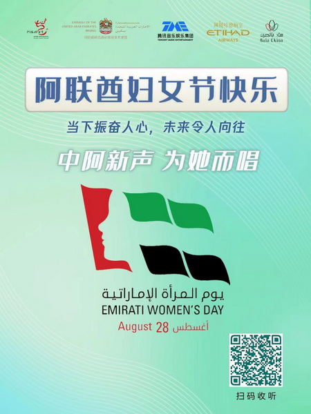 8月26日,作为“中阿新声——线上音乐竞演季”重要内容之一的阿联酋妇女节主题日活动在线上启动,活动通过QQ音乐平台推出主题歌单,精选20首由中国和阿联酋女性艺术家所演唱歌曲,供两国民众分享交流,该活动旨在庆祝2022年阿联酋妇女节,同时凸显女性在促进中阿文化交流中的重要作用。
