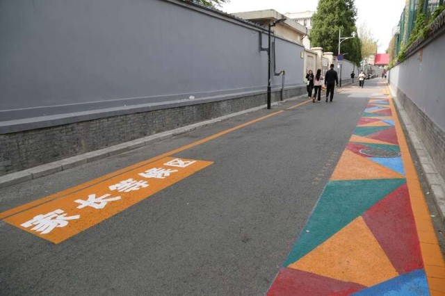 北京市东城区灯市口北巷的“彩虹步道”和“家长等候区”。王辉/摄