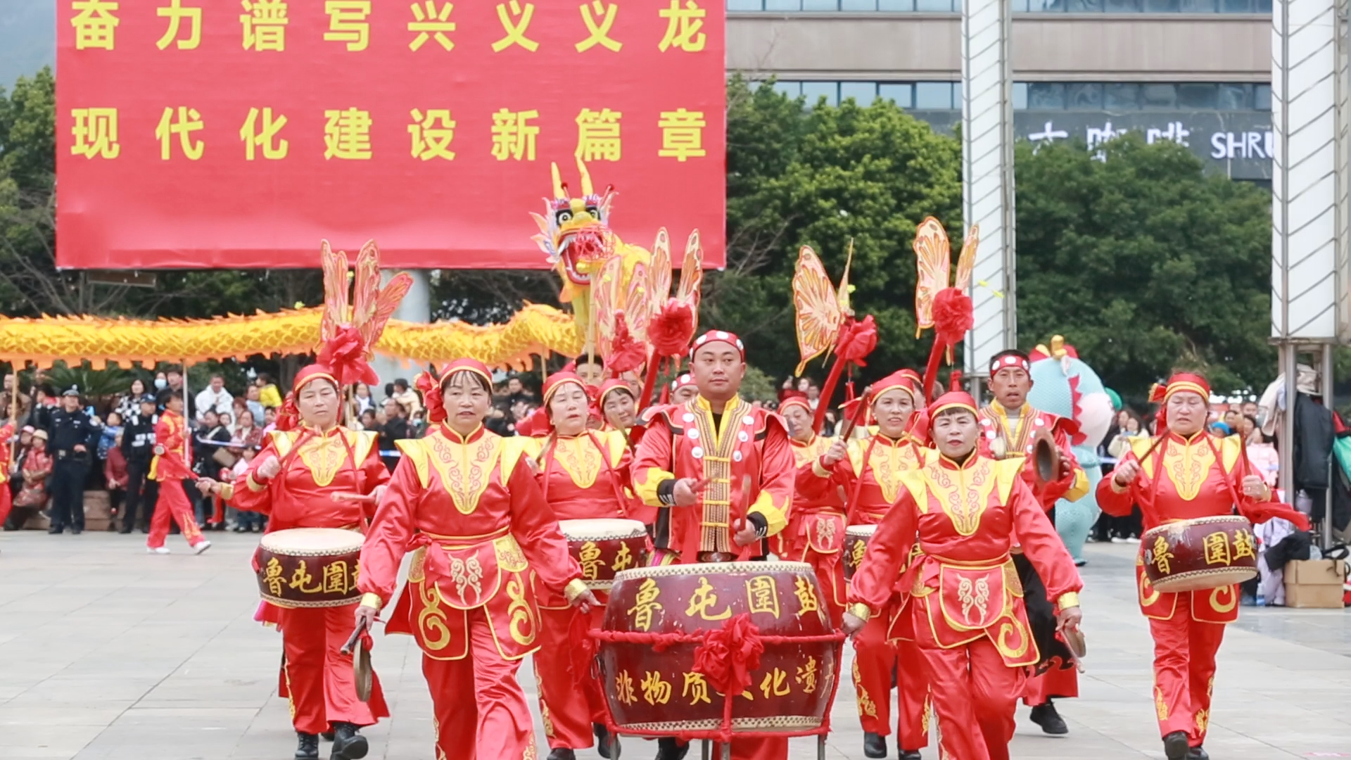 【出镜】亲爱的朋友们,元宵节快乐!我是贵州台记者吕雯,我们在全国油菜花最早盛开的“康养胜地、人文兴义”向您问好!在我的身后,当地组织了百米长龙、九把一珠龙、彩带龙、黔小龙等百余条舞龙队和8支舞狮队、围鼓队开展集中定点展示和巡游展示。过龙年,起龙舞。一条条舞龙闪转腾挪、上下翻飞,赢得满堂喝彩,借此机会给大家拜年了!