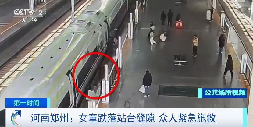 除了旋转门,列车与站台间缝隙也要格外注意。2月12日,G1875次列车运行至郑州东站停靠期间,一名女童在上车时不慎踏空,跌入列车与站台间的缝隙中,正在站台执勤的乘警立即上前施救。