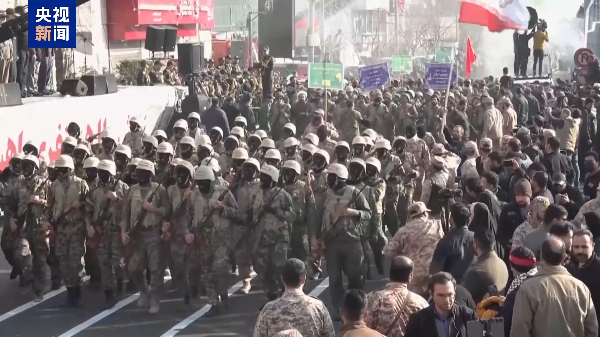 据伊朗伊斯兰共和国通讯社当地时间10日报道,伊朗伊斯兰革命卫队下属志愿军当天在首都德黑兰举行大规模演习。同一天,伊朗伊斯兰革命卫队公布一处新的导弹基地。据报道,10日的演习共有约11万名名为“动员穷人组织”的成员参加。
