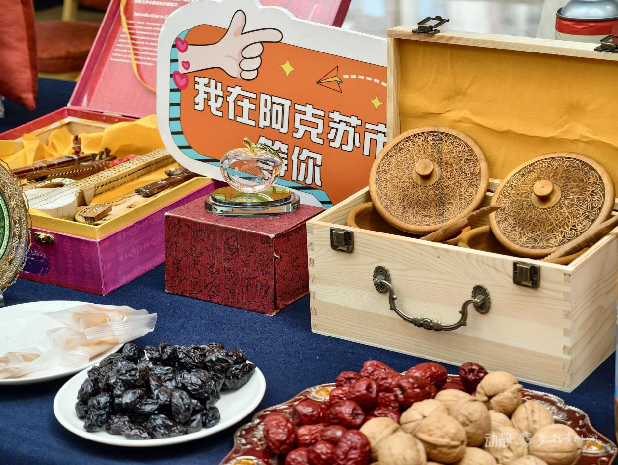 嘉宾们现场品尝新疆红枣、核桃、慕萨莱思等特色物产,欣赏灵动优美的龟兹乐舞,与阿克苏文旅代表团共跳民族舞蹈,沉浸式体验阿克苏的人文风情与旅游魅力,赴疆旅游的热情持续高涨。