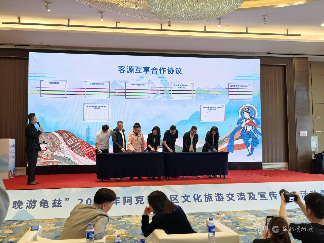 现场文旅交流氛围热烈,阿克苏多家文旅企业与贵州旅行社、文旅机构精准对接、深入洽谈,现场签署形象共推、客源互享、业态创新等16项合作协议,为两地文旅资源互通、市场共建、品牌共塑注入强劲动力。