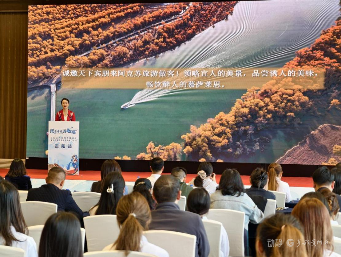阿克苏地区阿克苏市、沙雅县、新和县、阿瓦提县、柯坪县等地文旅负责人依次推介,全方位展示当地雄奇自然风光、厚重龟兹文脉、特色文旅项目与产业发展潜力,让贵州文旅界与市民近距离感受丝路名城的独特魅力。