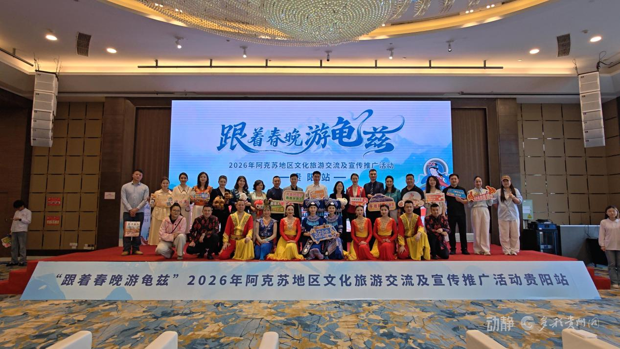 千年丝路传雅韵,万里黔疆结深情。4月15日,“跟着春晚游龟兹”2026年阿克苏地区文化旅游交流及宣传推广活动在贵阳举办。
