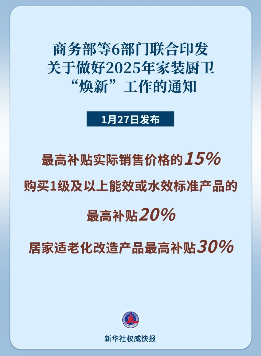 聚焦绿色、智能、适老!家装厨卫“焕新”补贴标准明确