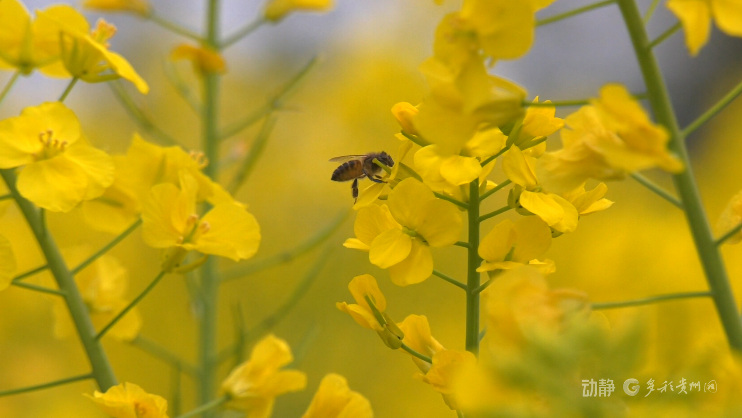 走进油菜种植基地,金黄花瓣层层舒展,随风轻舞。蜜蜂在花间穿梭采蜜,阵阵清香沁人心脾。俯瞰之下,金色花海与青山、碧水、村寨、田园相互映衬,勾勒出一幅灵动的春日画卷。游客纷至沓来,漫步赏景、拍照留念。