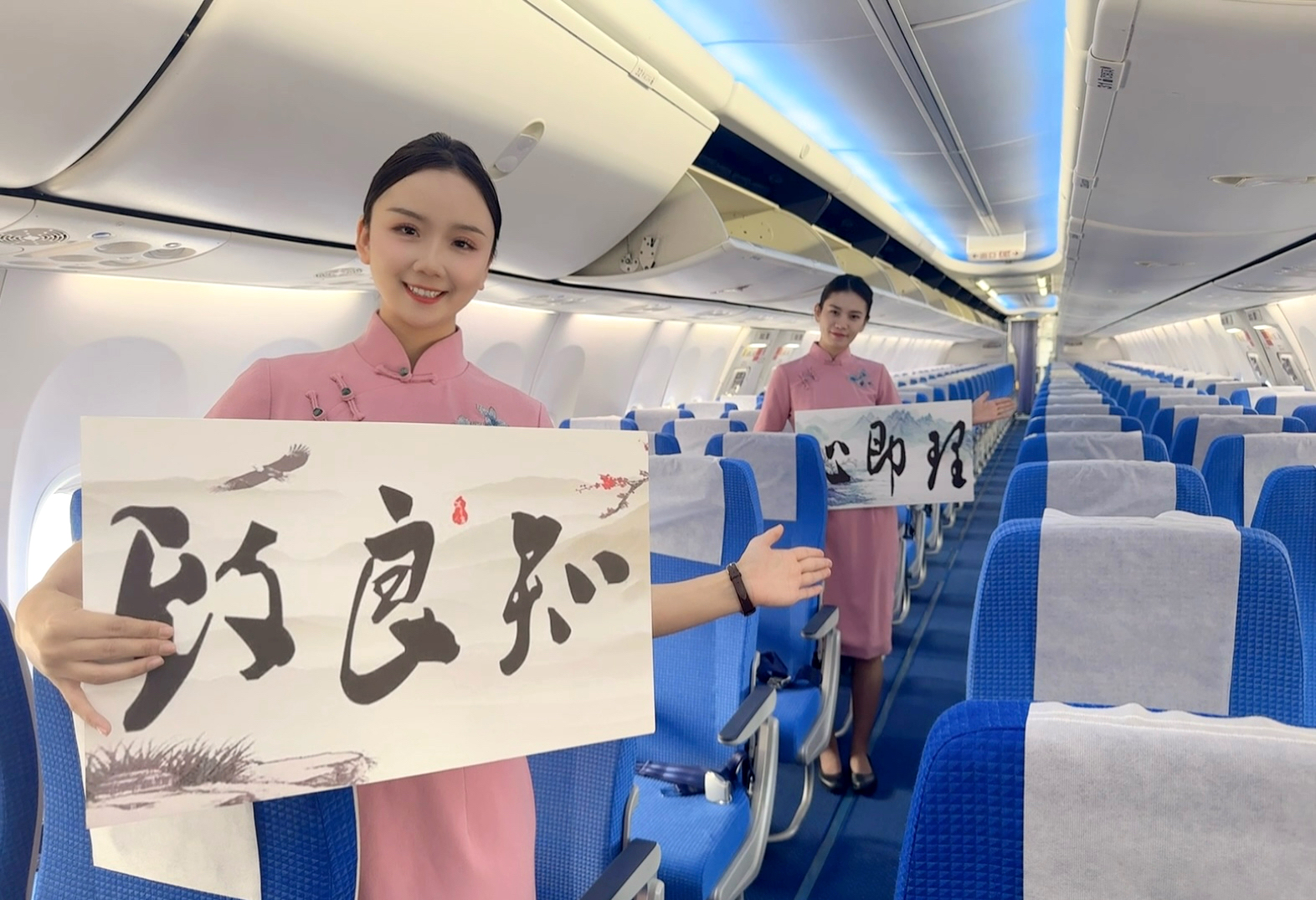 史料显示,王守仁是中国明代最著名的思想家、哲学家、文学家和军事家。世称阳明先生,又称王阳明。500年前,王阳明在贵州悟道、体道和传道,创立了“阳明心学”,使得贵州成为心学圣地。他的“心即是理”“致良知”“知行合一”等思想,对贵州、中国乃至东南亚都产生了重要影响。当天航班起飞前,乘务组以“阳明心学”为核心元素,将印有相关名句与解读含义的字画布置在客舱内,同时乘务员们统一换上中式旗袍,多角度展示这一思想体系的魅力与精髓,为旅客营造了浓厚、温馨的传统文化氛围。