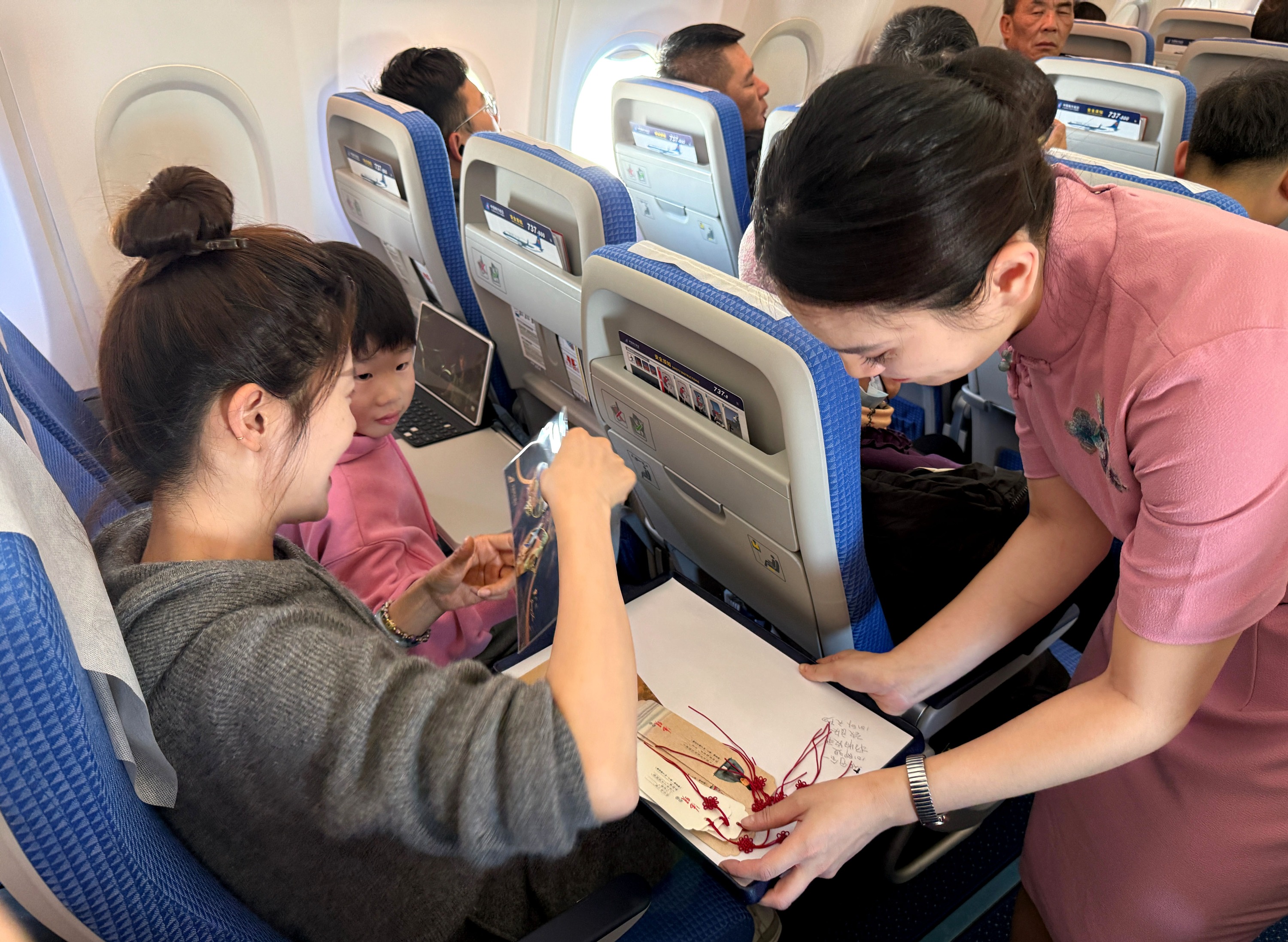 2024年11月21日,在贵阳飞往上海CZ3681航班上,150名旅客首次体验了一场别开生面、意义深远的空中文化传播活动。当天,南航贵州公司乘务组精心打造的“知行合一,向上向善”主题航班正式启航,通过开展一系列与“阳明心学”相关的机上特色活动,为旅客带来耳目一新、丰富多元的美好飞行体验。