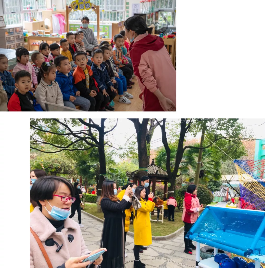 随后,在中心实验幼儿园冷园长与冯园长的引领下园长们来到户外观摩孩子们的自主游戏活动。参观过程中园长们作为观察者,通过看、问的方式深入了解了孩子们的户外自主游戏活动,纷纷感叹在户外活动中教师放手的重要性,让孩子去思考、去探索,不干扰孩子的决定与想法,真正做到了游戏中的支持者、引导者、观察者;鼓励孩子不断去探索、研究、创新更多的玩法。
