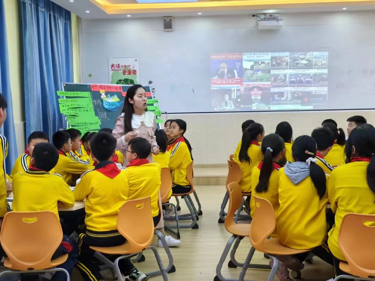 教师课堂教学展示环节中,温运琴老师从制作、历史、特点、作用和产品几个方面,带来了生动的一堂《为你喝彩,铜仁抹茶》综合实践课。她声情并茂,语言亲和,将铜仁抹茶文化带入课堂,让一堂原本枯燥的综合实践课,变得多彩而有活力。