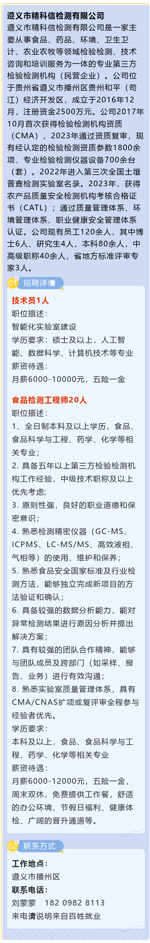 周末双休、五险一金!月薪6000-12000元!遵义市精科信检测有限公司招聘!