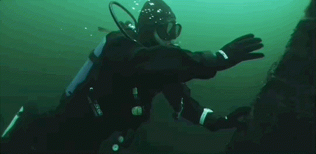 继续下潜,手电筒的灯光瞬间唤醒了这堵隐秘的城墙。