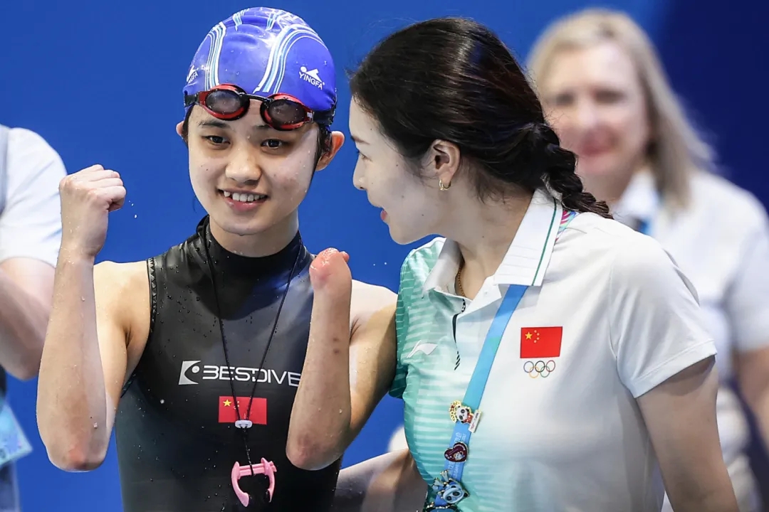 2009年出生的小将黄诗雨在残疾人自由潜水女子动态有蹼FFS1-FFS2项目中,以149.5米的成绩夺冠,领先第二名25米。“我在训练中也游出过这个成绩,对这块金牌是有预想的。”她坦言。