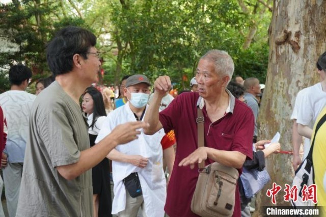 图为南昌八一公园手语角内,聋哑人们正在用手语交流。肖文玥 摄