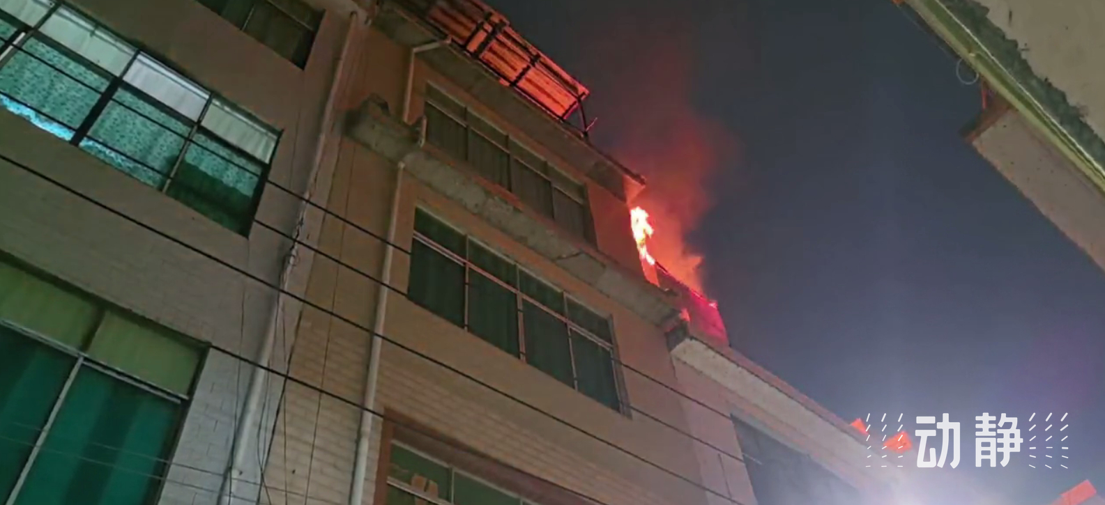 消防救援人员到达现场后,经侦察发现,起火位置位于4楼楼顶平台铁皮临时搭建的棚子处,现场浓烟滚滚,火势正处于猛烈燃烧阶段,无人员被困。