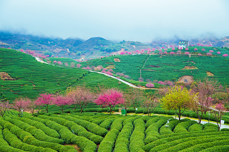 福建龙岩漳平永福樱花茶旅景区内,樱花如丹砂、浓点美人唇。陈秀容摄