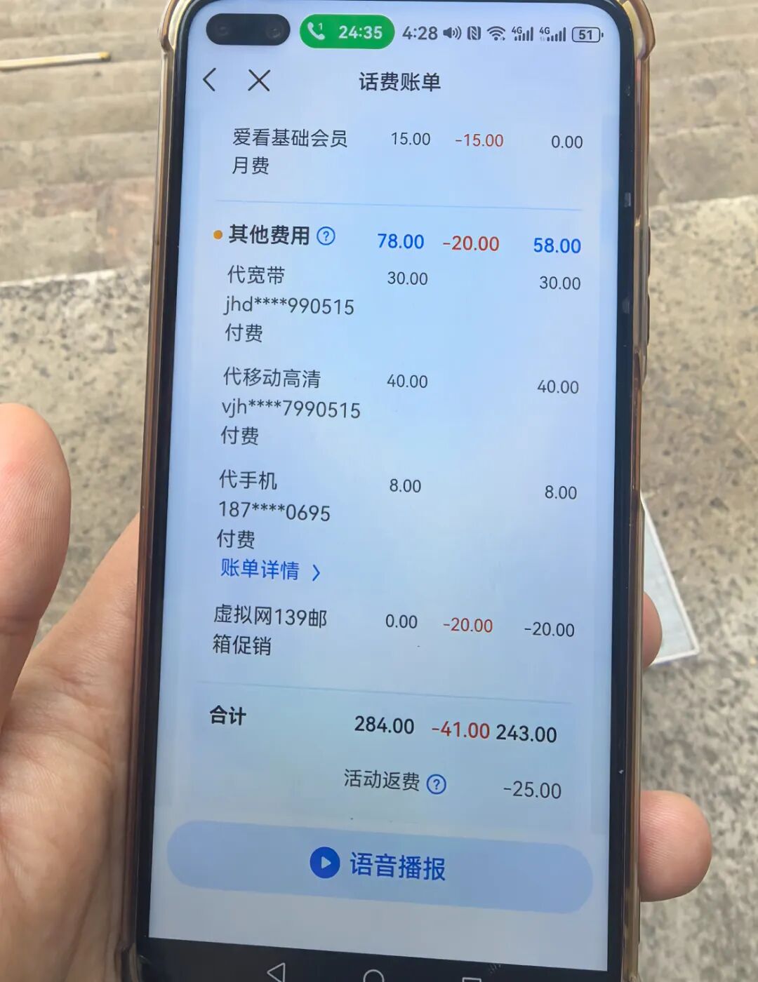 客服告诉楼先生,扣费从2018年10月开始,他一算,7年多被扣掉了3520元,“账单上这么多费用,我自己都搞不清楚,更不要提我父亲都63岁了,他毫不知情,所以过了这么多年才发现。”
