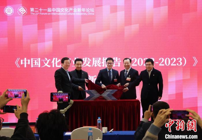 《中国文化产业发展报告(2022-2023)》在论坛现场发布。第二十一届中国文化产业新年论坛组委会供图