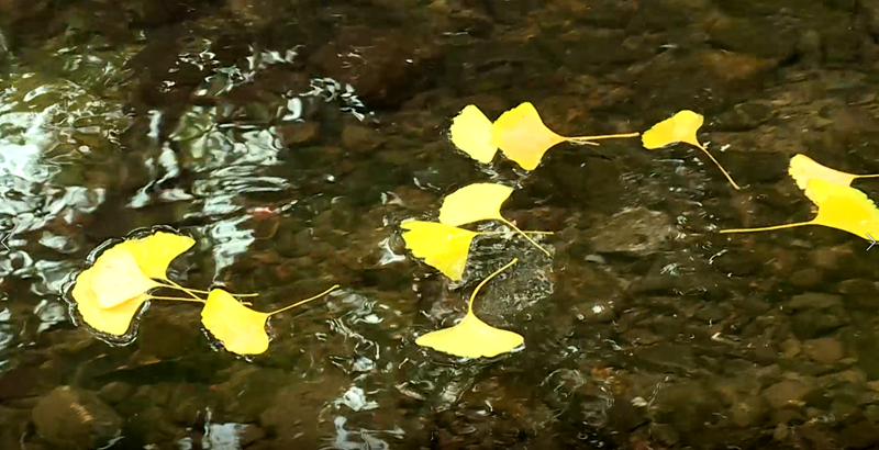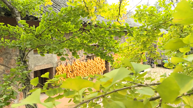 村在林中,人在树下,人树相依。潺潺溪水,小桥流水,古朴清幽。银杏枝头果实累累,到处一片丰收的景象。常有游客到此打卡观光。